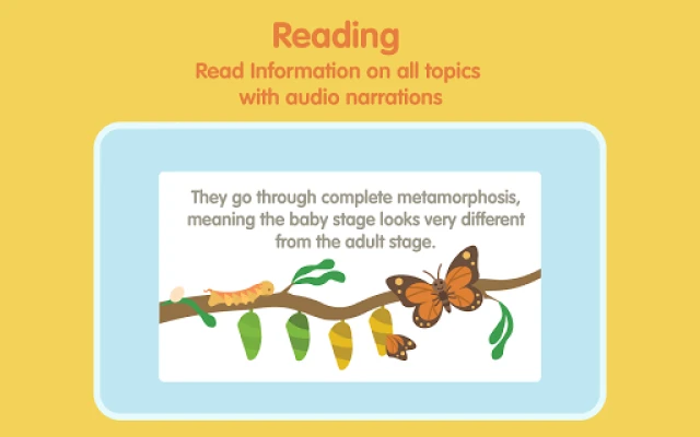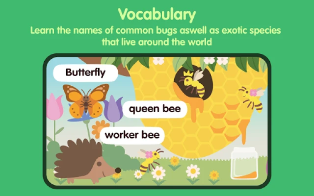 यह ऐप बच्चों को कीड़ों के जीवन चक्र की अविश्वसनीय यात्रा का पता लगाने का अवसर भी देता है – अंडे से लेकर वयस्क तक। यह अवधारणा विज्ञान की नींव को समझने में मदद करती है। प्रत्येक कीट के बारे में जानकारी, उनके घर और भोजन सहित, रंगीन ग्राफिक्स के साथ प्रस्तुत की जाती है, जिससे सीखना एक दृश्य दावत बन जाता है। **Bugzzy एक्सप्लोरर** कीड़ों से संबंधित शब्दों पर ध्यान केंद्रित करके आपके बच्चे की शब्दावली को लगातार बढ़ाता है, जिससे उन्हें नई भाषा सीखने का एक ठोस आधार मिलता है। यह एक संपूर्ण शैक्षिक अनुभव है जो बच्चों को कीड़ों की दुनिया का अन्वेषण करने और उनके आसपास की प्रकृति की गहरी समझ विकसित करने के लिए प्रेरित करता है।