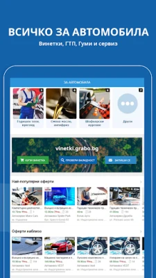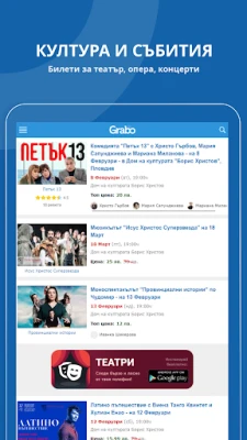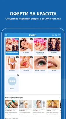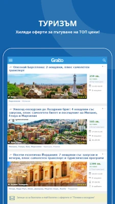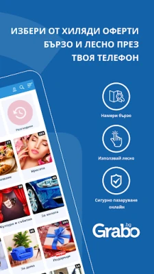 Grabo.bg बुल्गारिया के सबसे लोकप्रिय ऑनलाइन पोर्टलों में से एक है। यह छुट्टियों, विभिन्न सामानों और सेवाओं पर आकर्षक छूट वाले दैनिक ऑफ़र प्रदान करता है। यहाँ हर दिन नए और चुनिंदा प्रस्ताव प्रकाशित होते हैं।