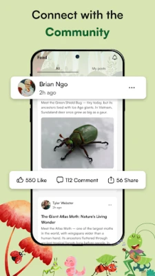 ज्ञान और सहयोग के लिए, ऐप में एक AI चैट भी शामिल है जहाँ आप सीधे प्रश्न पूछ सकते हैं और तुरंत उत्तर प्राप्त कर सकते हैं। वैश्विक फ़ीड में अपनी खोजों को साझा करें, दूसरों की पहचान से सीखें, और कीट पहचान के प्रति अपने जुनून को एक समुदाय के साथ साझा करें। "आप कौन सा कीड़ा हैं?" जैसे मजेदार फीचर्स के साथ, Insecto AI: Bug Identifier सीखने को एक मनोरंजक अनुभव बनाता है। यह प्रकृति प्रेमियों से लेकर पेशेवरों तक, हर किसी के लिए एक विश्वसनीय और व्यापक कीट पहचान साथी है।