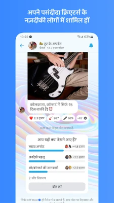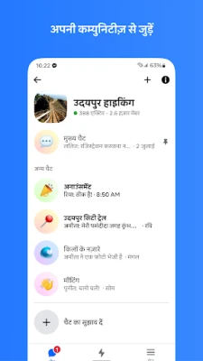 अपनी रुचियों के समुदायों से जुड़ें, अपने स्कूल या पड़ोस के लोगों के साथ घुल-मिल जाएँ। अपने पसंदीदा रचनाकारों के प्रसारण चैनलों में शामिल होकर विशेष सामग्री और अपडेट्स प्राप्त करें। 24 घंटे के लिए अपनी कहानियों और नोट्स के माध्यम से जीवन के छोटे-बड़े पल साझा करें। एनिमेटेड स्टिकर, GIF, और रिएक्शन के साथ अपनी भावनाओं को व्यक्त करें, और थीम की विस्तृत श्रृंखला के साथ अपनी चैट को व्यक्तिगत स्पर्श देकर उन्हें अपनी पसंद के अनुसार अनुकूलित करें।