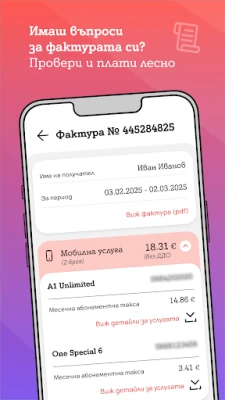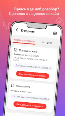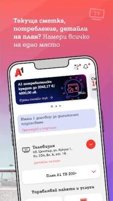 Моят А1 के साथ, अब आप अपने समझौतों को ऑनलाइन देख और उन पर हस्ताक्षर कर सकते हैं, जिससे कागजी कार्रवाई की परेशानी खत्म हो जाती है। नई फिक्स्ड सेवाओं की स्थापना के लिए अपनी आवेदन स्थिति और किसी भी तकनीकी समस्या के समाधान की प्रगति पर सहजता से नज़र रखें। अपने क्रेडिट लिमिट को कुशलता से प्रबंधित करें और विशेष रूप से आपके लिए तैयार किए गए व्यक्तिगत ऑफ़र प्राप्त करें। और यह सिर्फ शुरुआत है! Моят А1 आपके लिए अनगिनत अन्य संभावनाएं लाता है, जो आपके А1 अनुभव को पहले से कहीं अधिक सुविधाजनक और शक्तिशाली बनाती हैं।